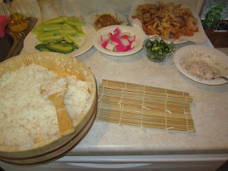 Sarah came over the other day and we made sushi. It was fun. Here's some pictures.